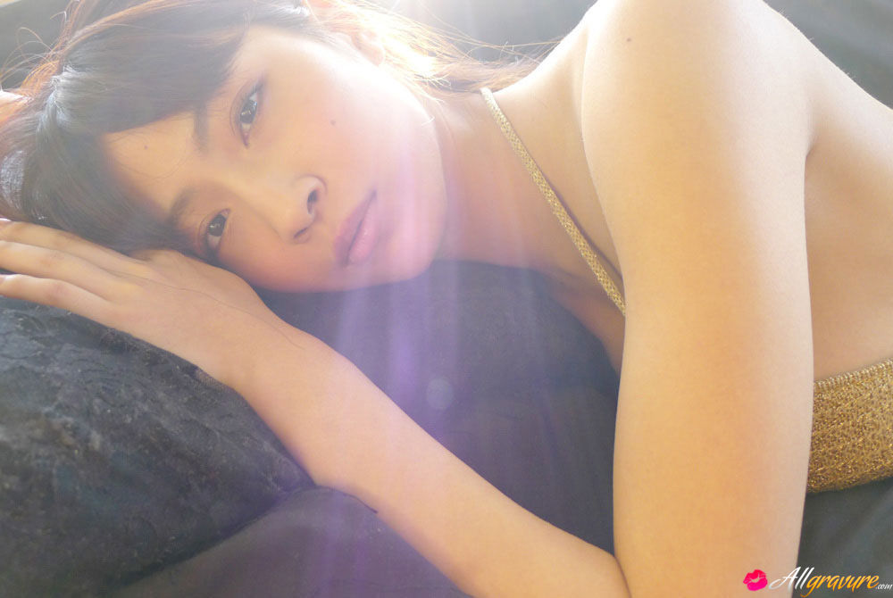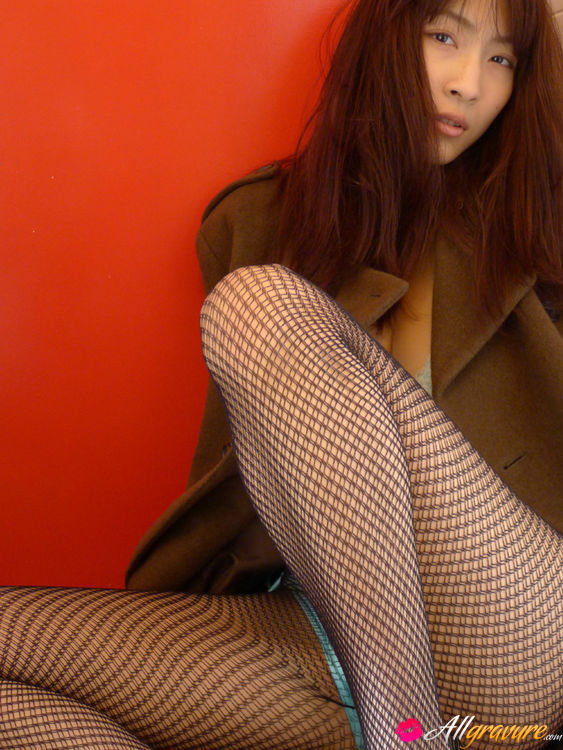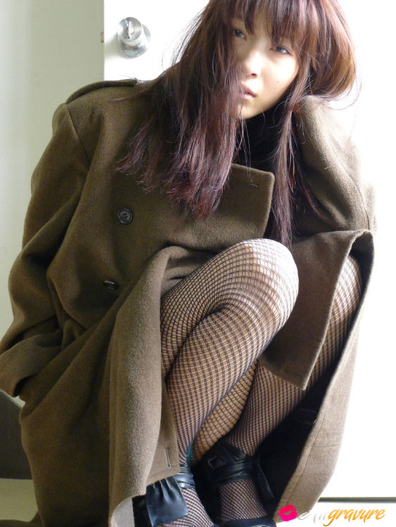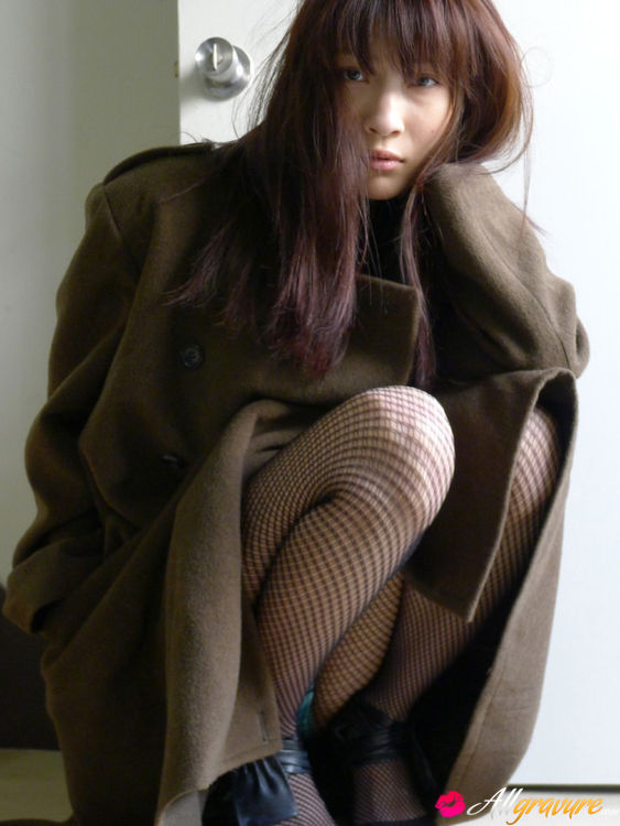 Asana Kawai Asian puts army coat on her big bra in knitted bra