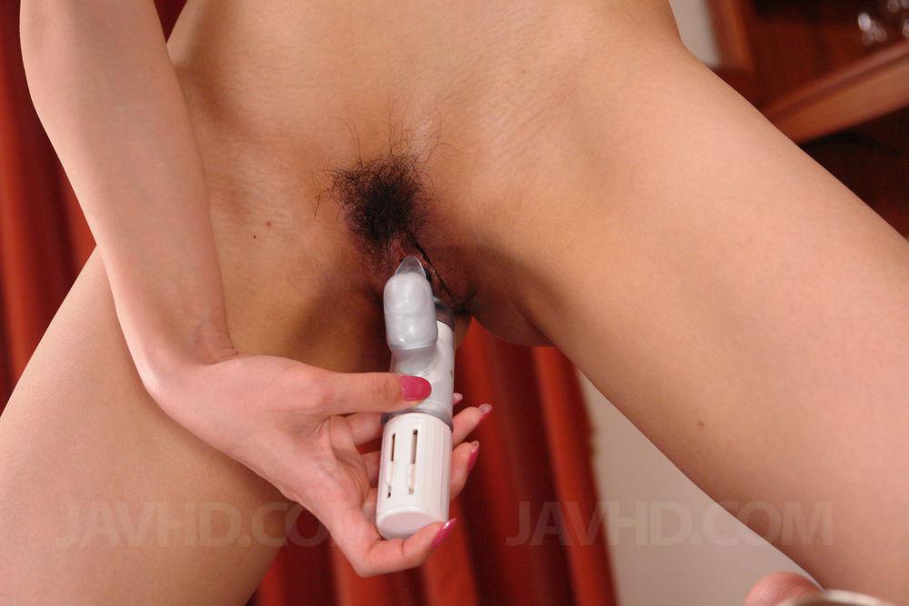 Rika Aiba rubs her brown cooter and arouses more with vibrator